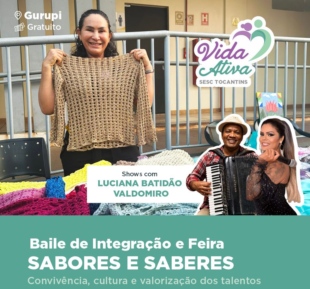 O Sesc Gurupi realiza nesta sexta-feira, 24, a Feira Sabores e Saberes, seguida do tradicional Baile de Integração do Grupo Vida Ativa, em Gurupi. A programação celebra a valorização da pessoa idosa, promovendo cultura, lazer e convivência em um ambiente acolhedor e festivo.
